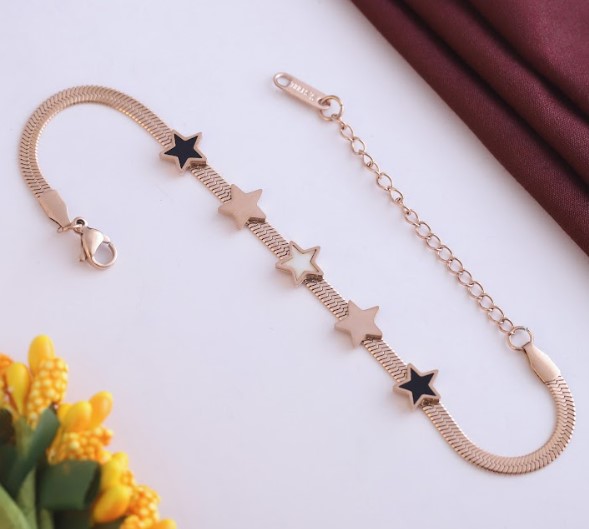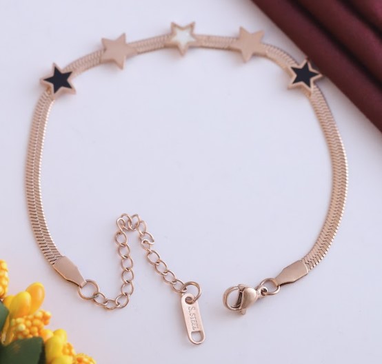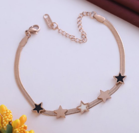 Anti Tarnish Jewellery | rose Gold Plated Stainless Steel chain bracelet its length is 16 cm plus 5 cm adjustable chain so total legnth is 21cm (6.5inch) its snack chain bracelet workmanship: Produced under Serious Quality Control; One by One Checking; Focus on Detail Processing. Top Quality/Never Fade/Brand New Design/Anty-Allegy chain Bracelets for women Stainless Steel demi fine rose gold plated Bracelet for girls.