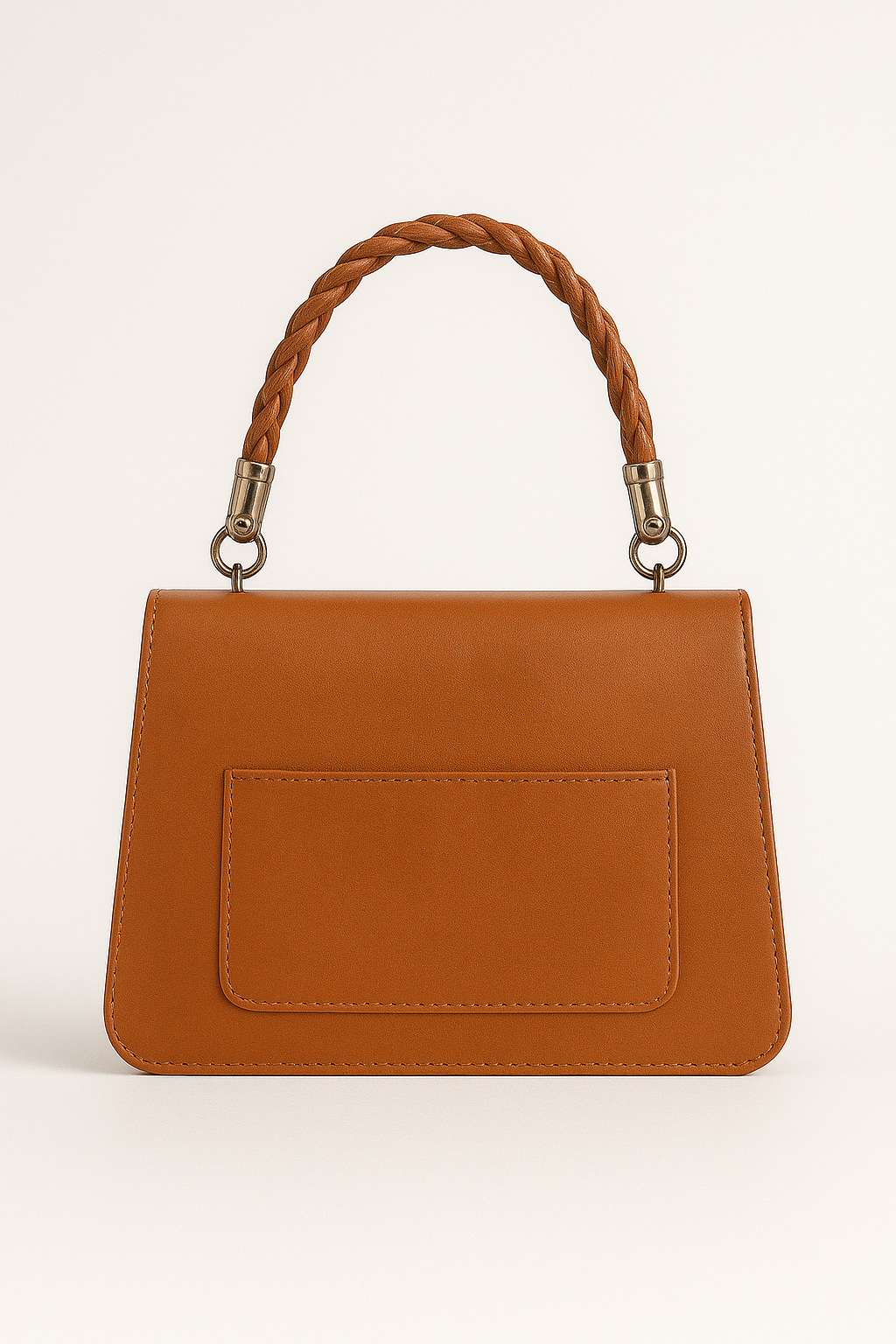 This classic tan handbag combines timeless elegance with modern functionality. Featuring a stylish braided handle and a secure metallic clasp, it offers a chic yet practical design. Perfectly sized to carry your essentials, this handbag is ideal for daily wear, office use, or casual outings