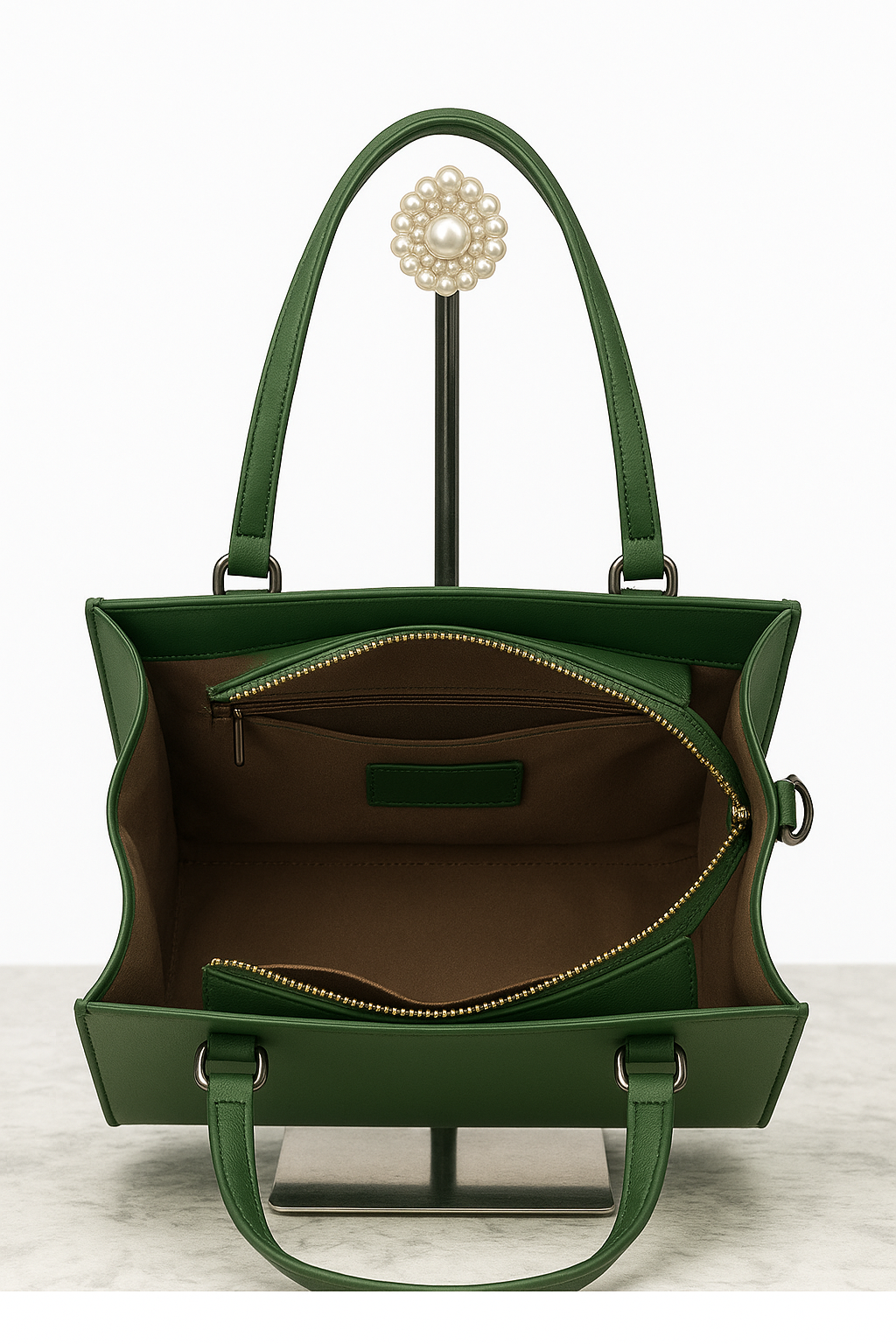 Elevate your style with this elegant green handbag, designed with a sleek finish and dual black handles for a modern contrast. Crafted from premium-quality material, it offers durability and sophistication in one. Its spacious interior makes it perfect for daily use—whether for office, shopping, or casual outings. The versatile design allows you to carry it comfortably as a handbag or shoulder bag, while the secure closure ensures your essentials stay safe. A timeless piece to complement any outfit.